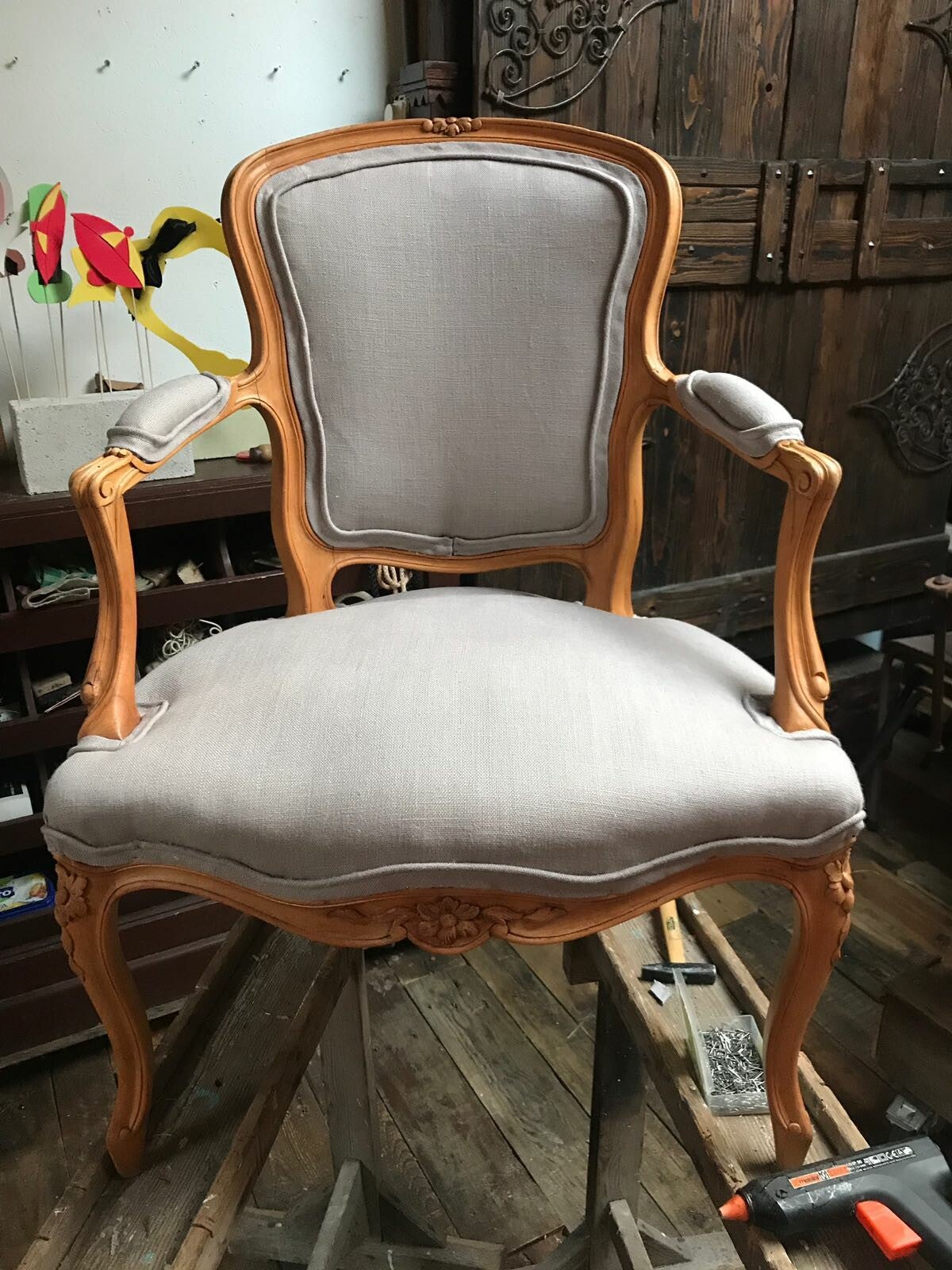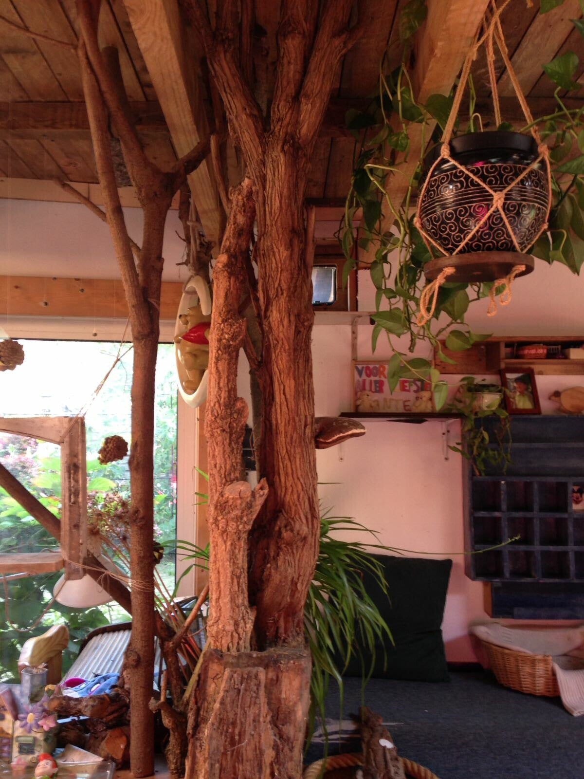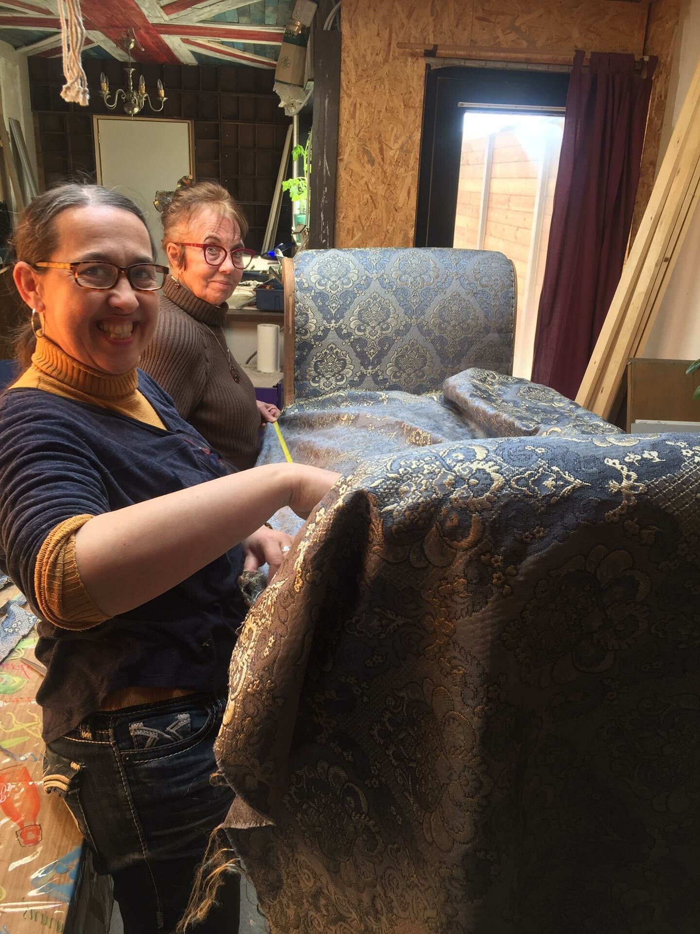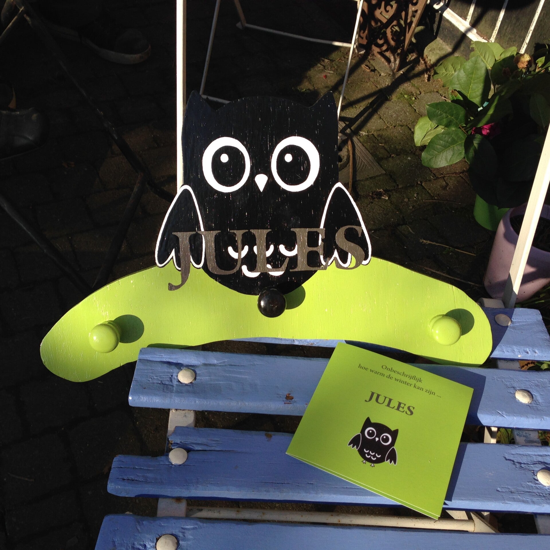 "Als kleuterleidster was ik al een brok creatieve energie. Dingen weggooien was geen optie. Ik zag er steeds mogelijkheden in of toepassingen voor. Ons huis was dan ook één grote opbergplaats voor spullen die je ooit wel es zou kunnen nodig hebben. Rommel voor anderen, voor mij een schatkamer aan materialen. Iets herstellen, iets creatief opwaarderen, iets een bestemming geven… daar haalde ik voldoening uit. Tijdens mijn periode van ziekte, zocht ik wat ik wel nog kon als ik 'goed' was. Ik begon met stoelen te pimpen. Kapstokjes te maken van geboortekaartjes en dingen weg te werken. Hier en daar vroeg iemand om zoiets voor zijn kinderen te maken en zo kwam van het ene het andere. Ik kan me uit de slag trekken met van alles een beetje. Zo werd het niet alleen meer upcyclen maar ook met resten iets maken. Mijn man bouwde de stallen om tot atelier, nog meer plaats om te prietsen en te prutsen met ditjes en datjes en… om gerief te zetten ;-) Zalig"