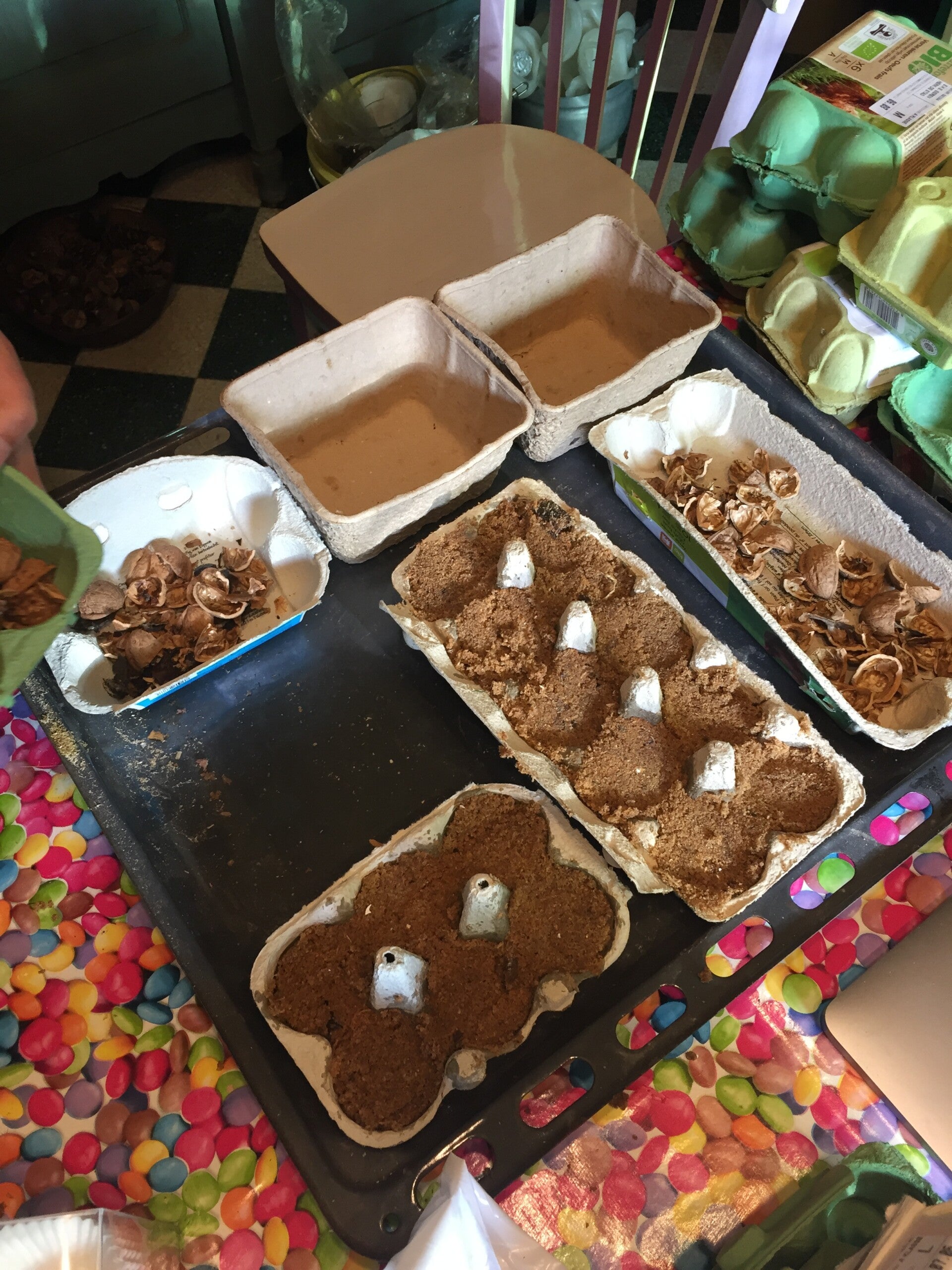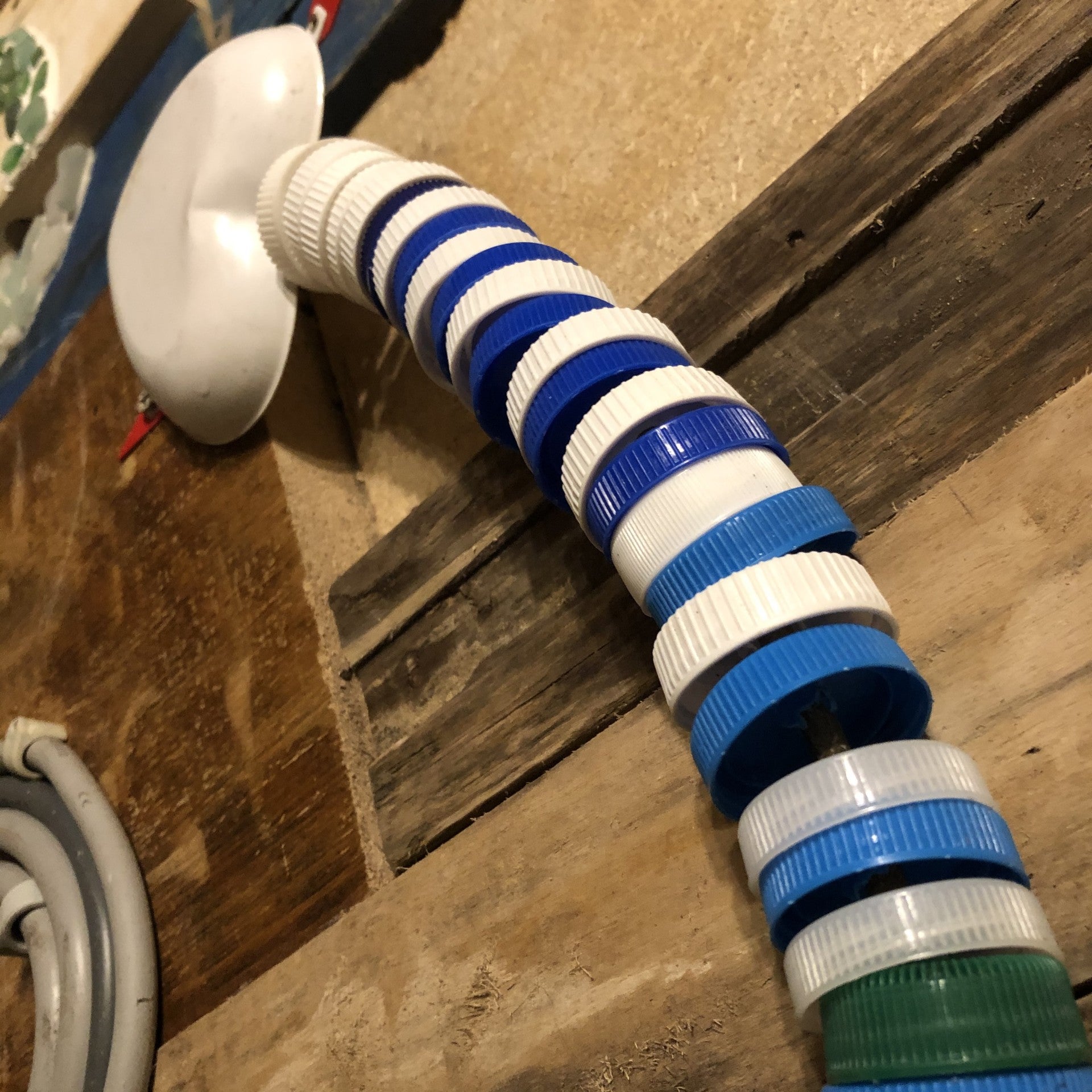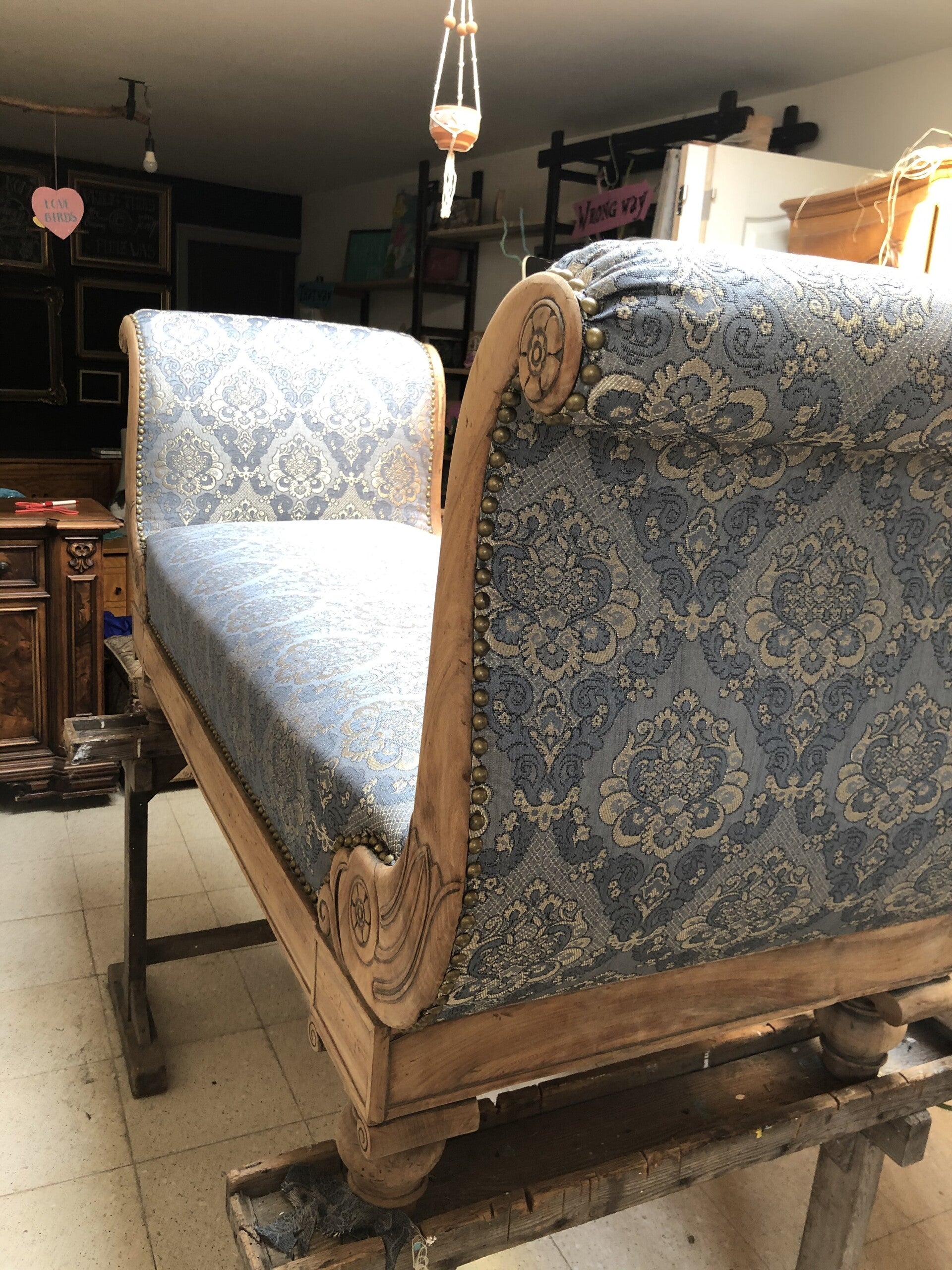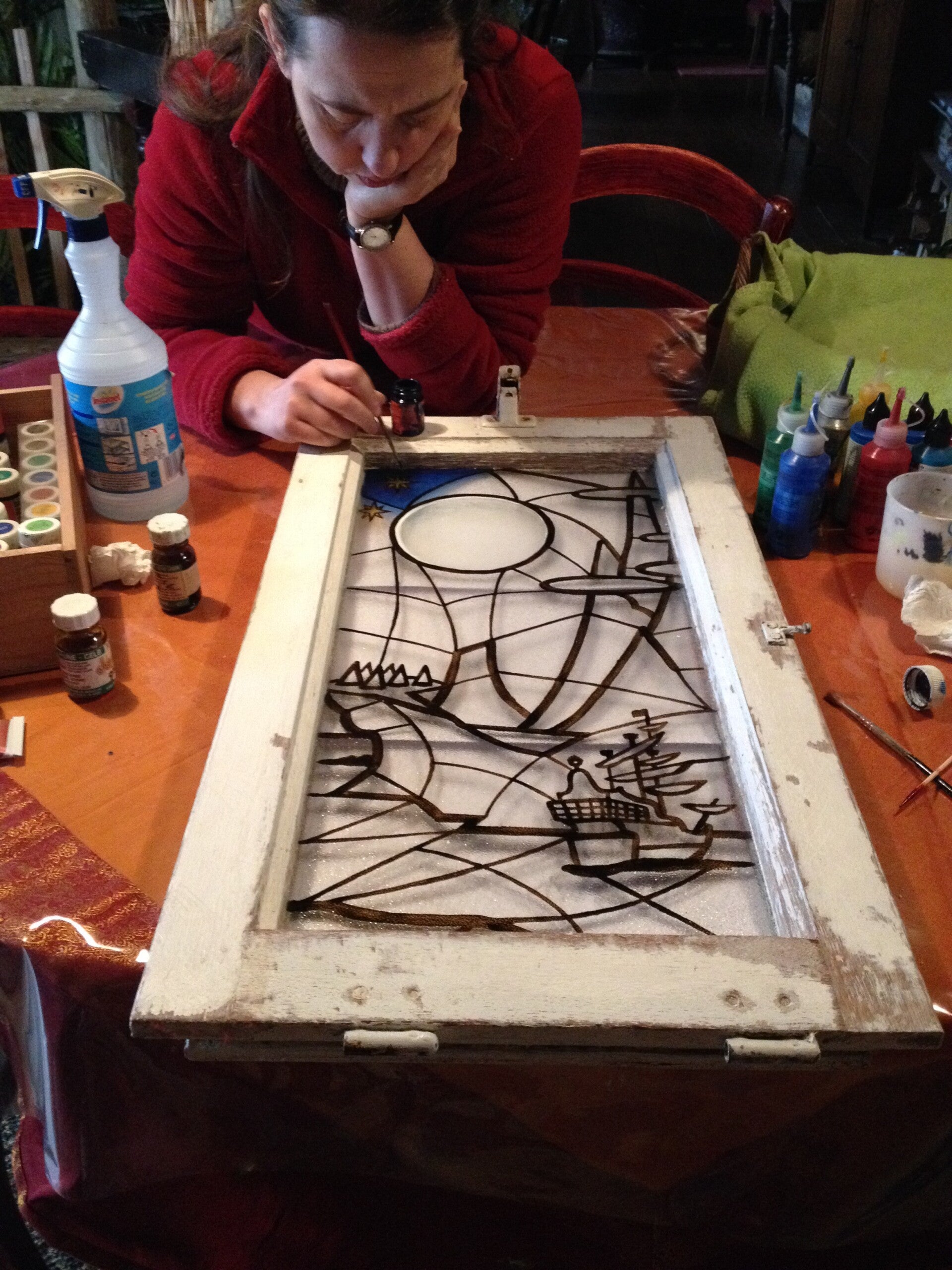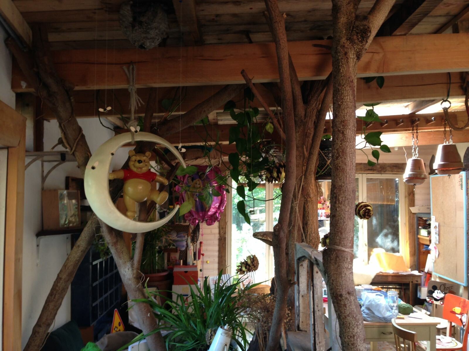 "Als kleuterleidster was ik al een brok creatieve energie. Dingen weggooien was geen optie. Ik zag er steeds mogelijkheden in of toepassingen voor. Ons huis was dan ook één grote opbergplaats voor spullen die je ooit wel es zou kunnen nodig hebben. Rommel voor anderen, voor mij een schatkamer aan materialen. Iets herstellen, iets creatief opwaarderen, iets een bestemming geven… daar haalde ik voldoening uit. Tijdens mijn periode van ziekte, zocht ik wat ik wel nog kon als ik 'goed' was. Ik begon met stoelen te pimpen. Kapstokjes te maken van geboortekaartjes en dingen weg te werken. Hier en daar vroeg iemand om zoiets voor zijn kinderen te maken en zo kwam van het ene het andere. Ik kan me uit de slag trekken met van alles een beetje. Zo werd het niet alleen meer upcyclen maar ook met resten iets maken. Mijn man bouwde de stallen om tot atelier, nog meer plaats om te prietsen en te prutsen met ditjes en datjes en… om gerief te zetten ;-) Zalig"